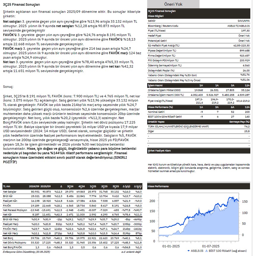 • Gedik Yatırım’dan ASELSAN Raporu